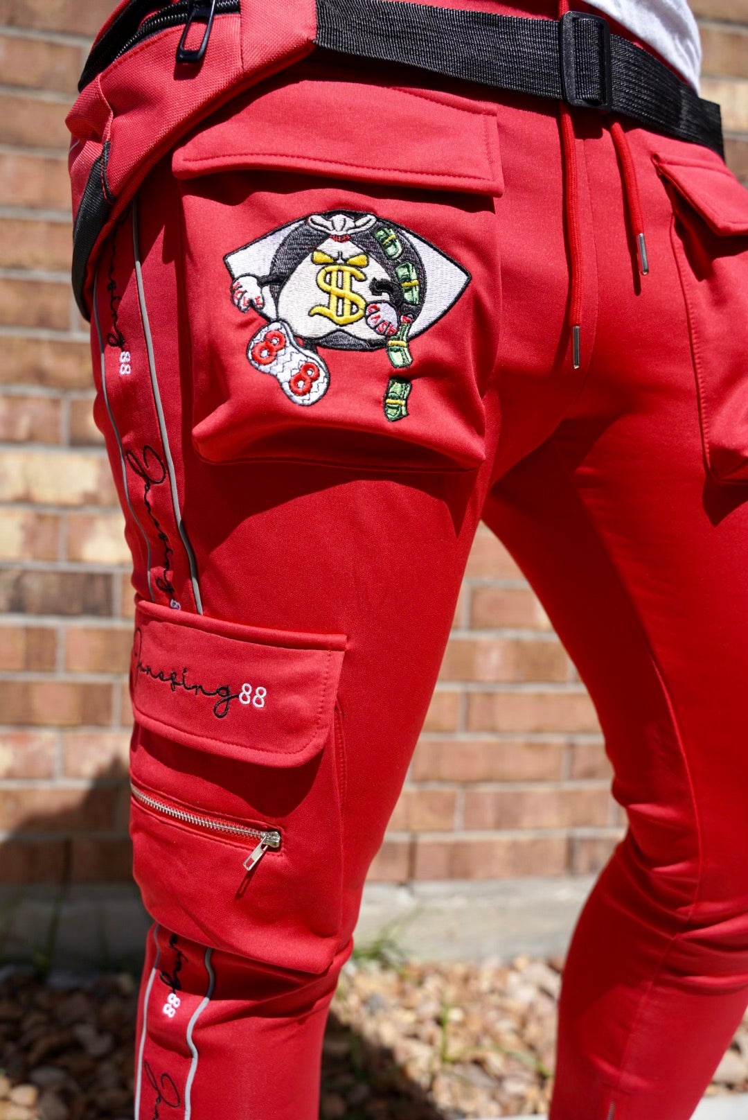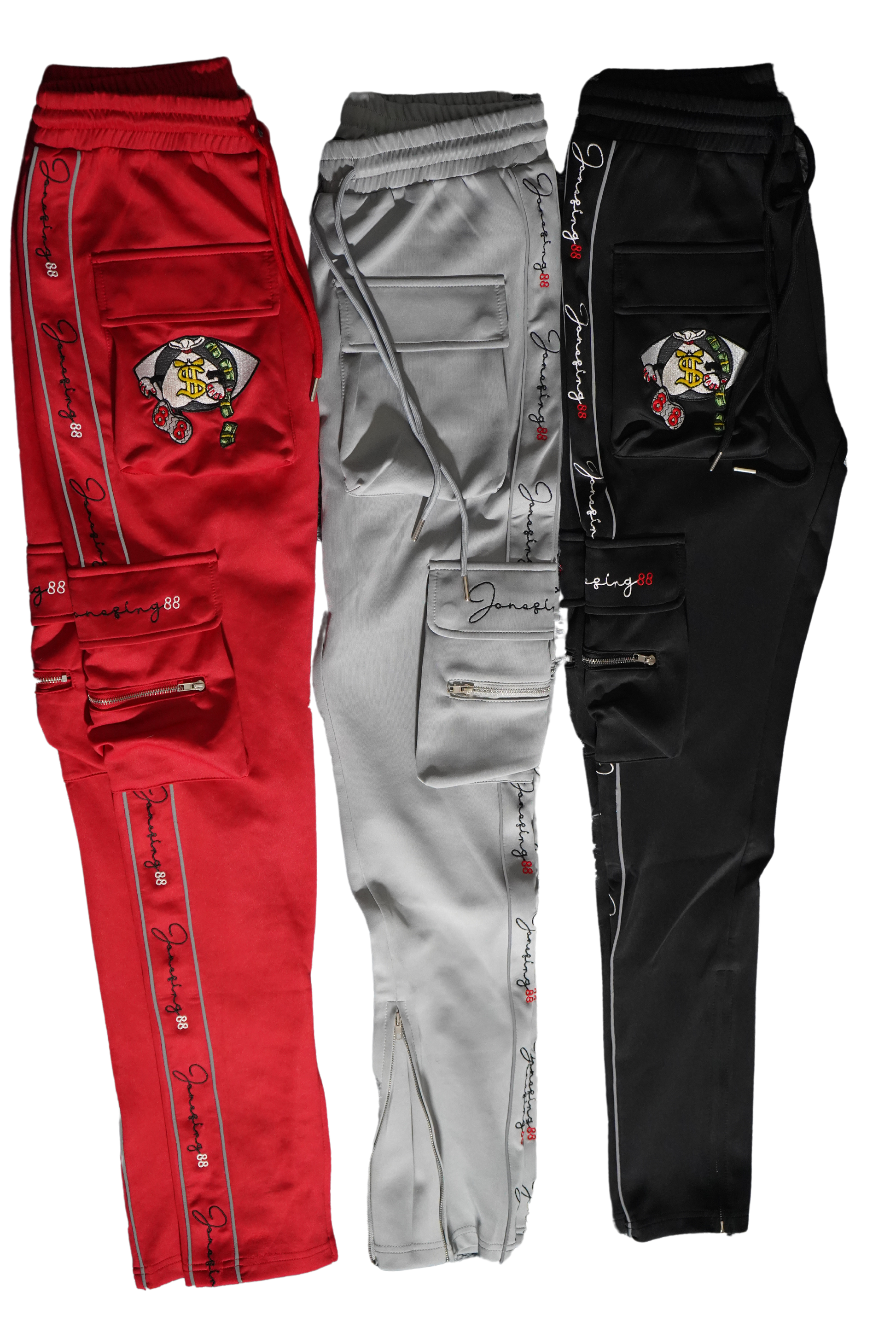 Experience ultimate comfort and style with Jonesing88 Joggers! Our high-quality polyester spandex blend provides breathability while the embroidery stitching adds a touch of sophistication. The draw string ensures a perfect fit, while the reflective detailing and snap button cargo pockets add practicality. Upgrade your wardrobe with these stylish and functional joggers!